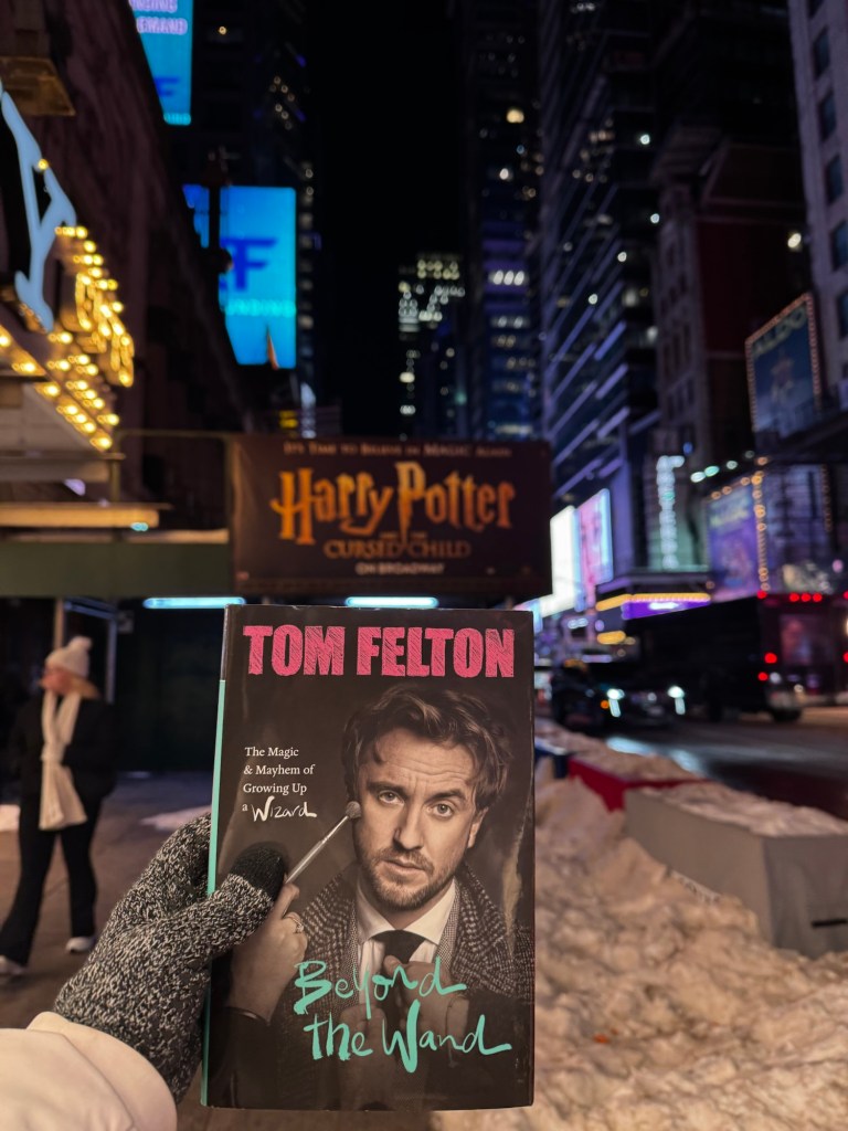 There’s absolutely NO WAY I will be able to fit just the entire New York trip in this post. So I will be highlighting some things here but I’m going to make another post that has all the minute details of our time there from start to finish! Now to some highlights: I never believe anyone when they rave about a show/book/whatever. So when people talked about how great the show was, I thought yeah ok we’ll see. I literally bawled while we watched Cursed Child because it was so beautiful. Just simply for the fabric that they used with the dementors, how flowy it was and eerie it made them. Not to mention that just being there with my husband with nothing to worry about but the freezing weather, life was really great. And then we went outside to wait for a signature from Tom, (which we did get!) and it was 6 degree weather (felt like -2). We sat out there for 2 hours waiting for him to come out, it was a test of will. But that hot raising canes after was AMAZING! LOL.