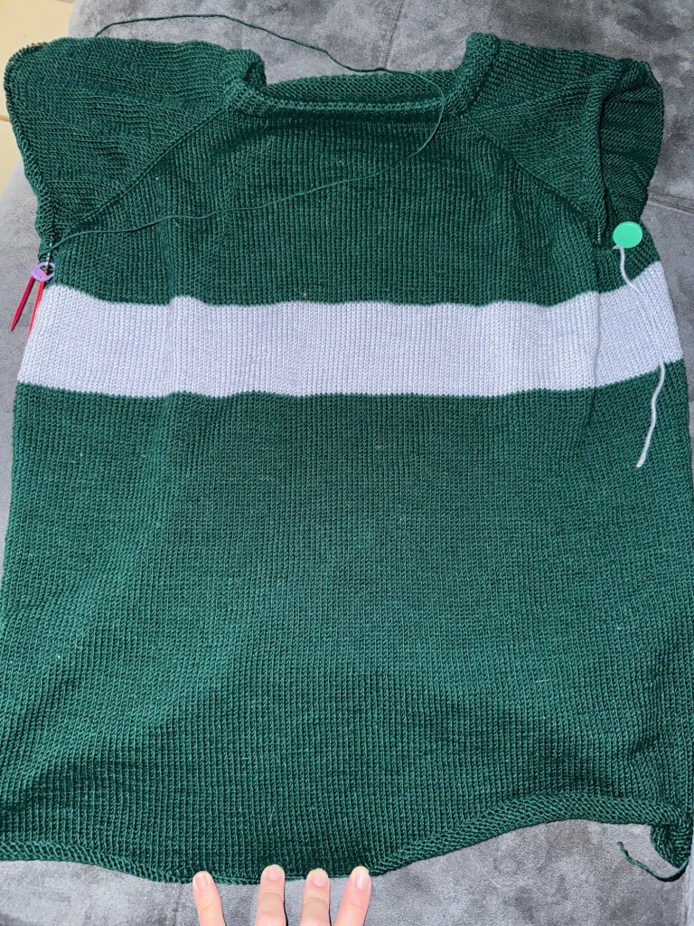 Ok, we’re all disappointed in not finishing the sweater I was hoping to give to Tom. But no worries, because I’ve convinced myself (husband pending) that we will be going back in April to see Tom in Cursed Child before he’s made his final appearance in May. So I have been working on the sweater still. We’re finally onto one of the sleeves, though I won’t finish the bottom ribbing of the body or the sleeves until after everything is finished. I’d like to stick to one form of knit before I move on to crocheting the ribbing on. (I prefer to make ribbing with crochet, y’all just have to be ok with the merge. ❤