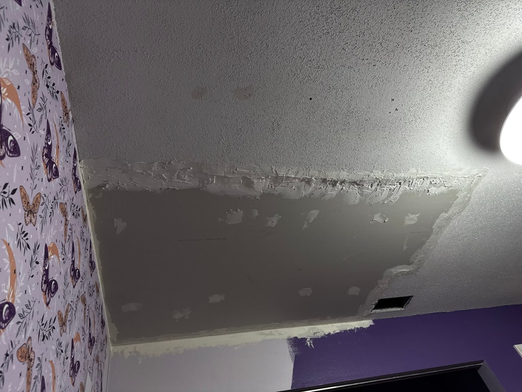 I’m sorry all! We’ve not been doing many home projects these passed two weeks. I did continue to patch up Lily’s roof as I’m trying to make it look flush because the drywall that was still up didn’t have enough support on the side that we didn’t cut down. So it’s just adding the puddy? and waiting for it to dry because I’m caking on so much. It is the lightweight stuff, so it’s more like airy playdough, but still. We’ve also just been trying to declutter and throw out/donate things that are just taking up space. I’ll get back to more home stuff this week, I promise!