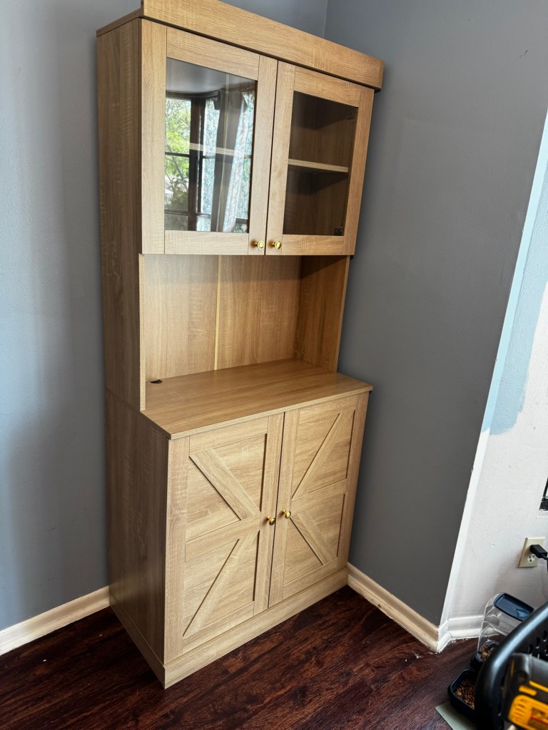 We also got these standing pantries for the dining room because our only pantry closet is so small that it would barely fit a pair of shoes because it’s not deep at all. So we got a set of three mix and match pantries from Amazon and they’re so cute, I love them.