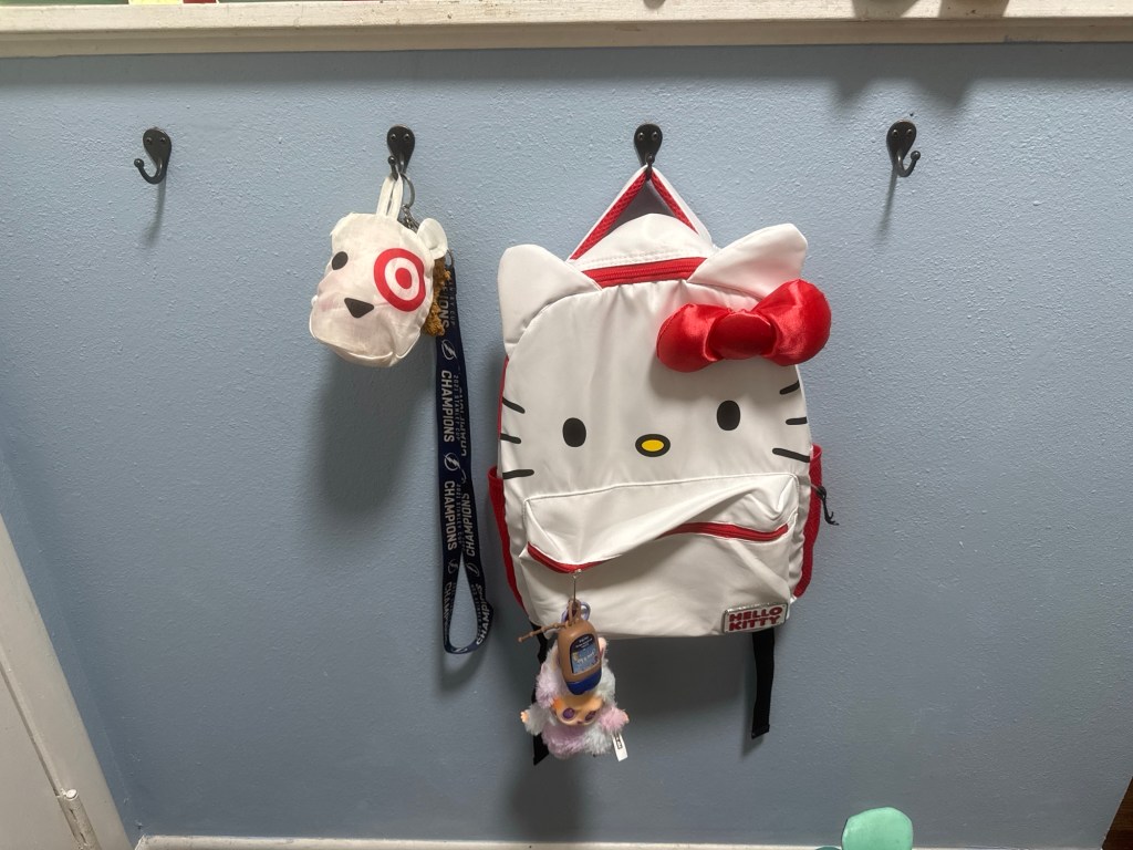 I’ve been slowly trying to add things to the house to actually have a PLACE for everything. So this week we put up some wall hooks for school backpacks and have finished setting up the pantry shelves. We’ve also been working on stuff outside, mostly planting some fruits and veggies, and some flowers. ❤